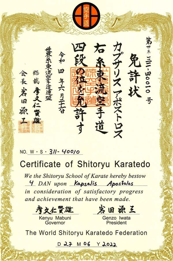 Όλα τα διπλώματα Νταν στα παραδοσιακά στιλ στην Ελλάδα είναι άκυρα αν δεν έχουν πιστοποιηθεί ή απονεμηθεί από την ΠΟΠΚ! Διαβάστε τα επόμενα τέσσερα άρθρα!