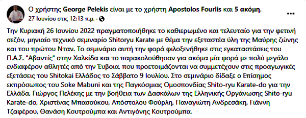 πολλά χρόνια τεχνικός του καρατε παρ' όλο που σήμερα είναι διοικητικός φρόντισε