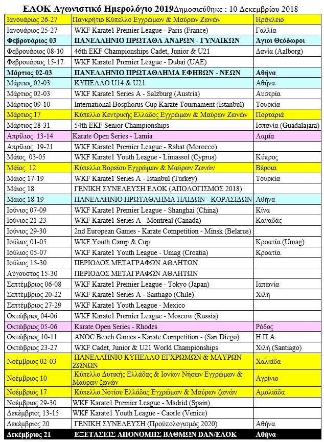 Ας δούμε, όμως, και τα καλενδάρια των τελευταίων ετών για να εντοπίσουμε ΑΠΑΤΕΣ της ΕΛΟΚ εις βάρος των αθλητών, προπονητών και συλλόγων!!! Και ας αρχίσουμε από το καλενδάρι του 2019: