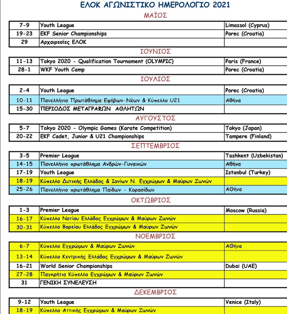 Τα ίδια ισχύουν και για το περυσινό καλενδάρι του 2021! Οι σειρές με άσπρο αφορούν σε διεθνείς αγώνες ή μεταγραφές ή συνελεύσεις, οι σειρές με πράσινο είναι οι απαραίτητοι θεσμικοί αγώνες της ΕΛΟΚ και οι επτά εδώ σειρές με κίτρινο Εγχρώμων και Μαύρων Ζωνών ή OPEN SERIES επί το ... κοσμικότερον (!) αφορούν σε αγώνες-απάτες της ΕΛΟΚ λόγω της μηδενικής αξίας τους!