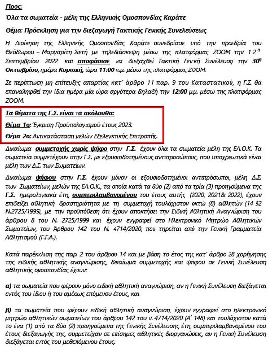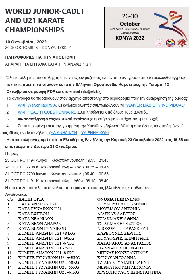Με κλικ εδώ βλέπετε την εγκριτική επιστολή της ΓΓΑ προς την ΕΛΟΚ για την εθνική ομάδα καράτε, συμμετοχές και προϋπολογισμό, που θα πάει στο Ικόνιο: