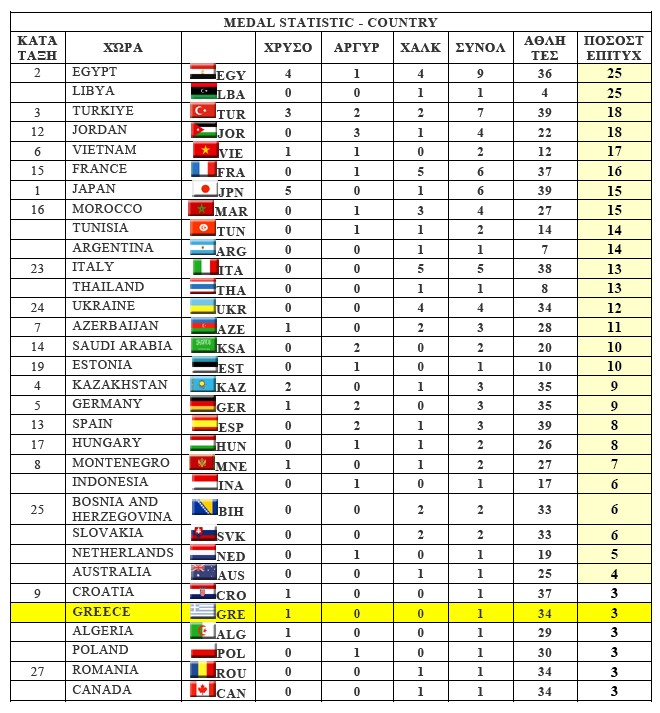 30/10/2022 - Τέλος των αγώνων και ας δούμε την Στατιστική των Μεταλλίων!