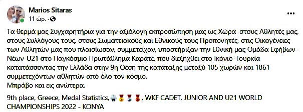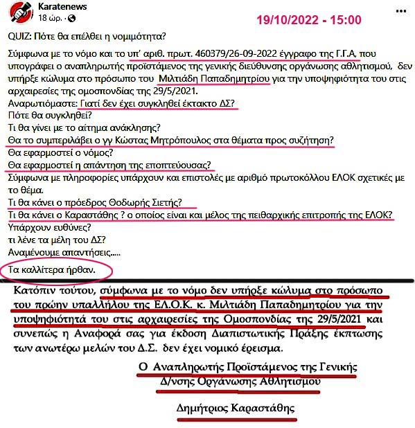 Ο Φανατικός αναγνώστης μας: Μόλις το www.karate.gr την 19/10/2022 (τρεις φωτό άνω), 11:22 πμ δημοσίευσε ότι ο Γερόλυμπος ξόφλησε, αφού είχε 6 ημέρες να δημοσιεύσει κάτι, ΑΜΕΣΩΣ τινάχτηκε ο μικρός (πλέον) να μας δείξει ότι "υπάρχει" με την επόμενη ανάρτησή του (κάτω) την ίδια μέρα στις 3:00 το μεσημέρι, στην οποία μάλιστα έχει και απόλυτο δίκιο!