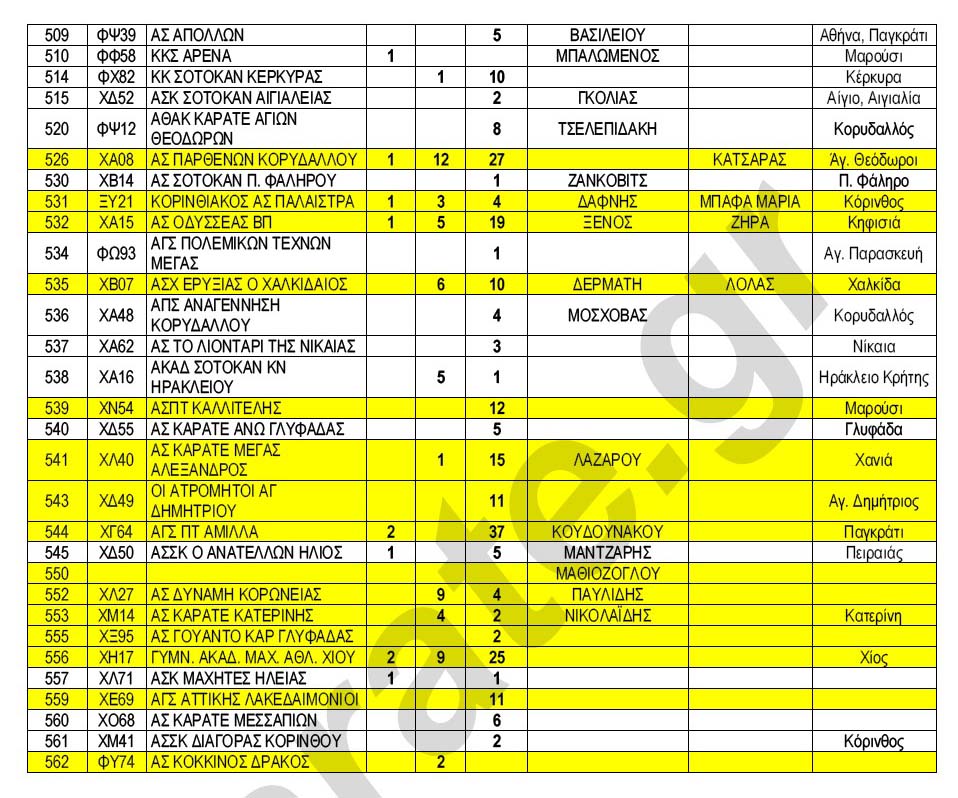 | 35 | Δεν ενημέρωναν την ΓΓΑ για το αθλητικό δυναμικό της ΕΛΟΚ. | Γνωστή καραμπινάτη παράβαση με συνέπεια την αφαίρεση της αθλητικής αναγνώρισης. |