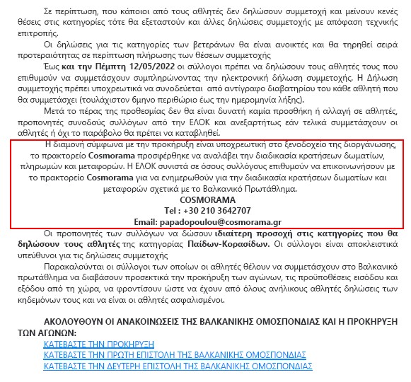 τους αθλητές όλων των κατηγοριών και επιπέδου γνώσεως!