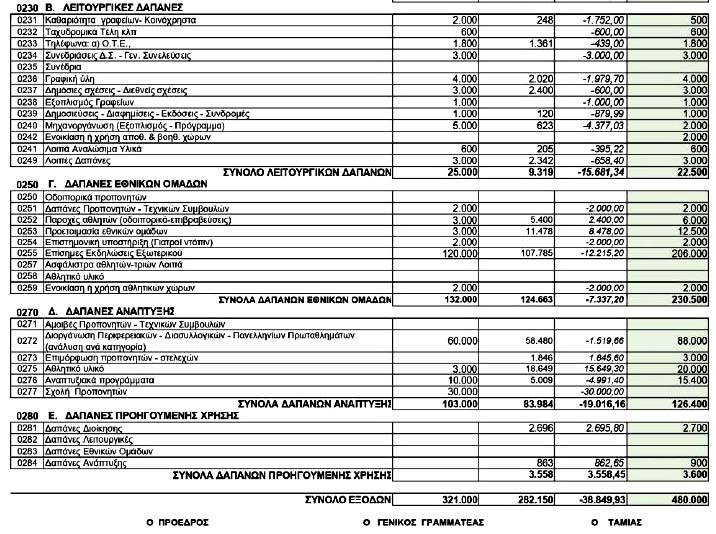 | 28 | Υπάρχουν εσκεμμένες αοριστίες στα έσοδα και στις δαπάνες. Εισπράττονταν τεράστια ποσά για διπλώματα Κύου και Νταν από αθλητές-προπονητές με την ψευδή αιτιολογία "έκτακτη οικονομική ενίσχυση για τους σκοπούς της ΕΛΟΚ"! |