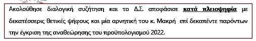 Το Πρακτικό αναφέρεται σε Αναθεώρηση του Προϋπολογισμού του 2022!!! Και δεν περιλαμβάνεται ο Προϋπολογισμός του 2023!