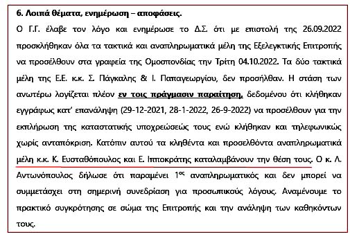 26/5/22 - Τα μέλη της Εκτελεστικής Επιτροπής και οι κρυφές τους αποφάσεις!