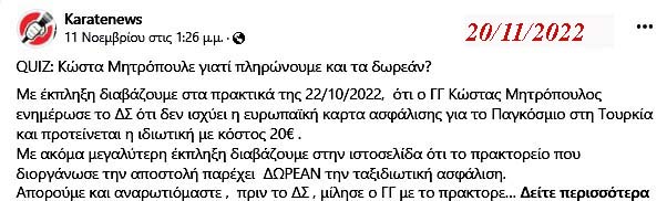 Μνημόσυνο στα Εννιάμερα του Γιώργου! - 20/11/2022 - Μετά το "QUIZ: Κώστα Μητρόπουλε ..." έχει να μας γράψει 9 ημέρες!!! Ανησυχώ μήπως τον έφαγε η ... Μαρμάγκα!!!