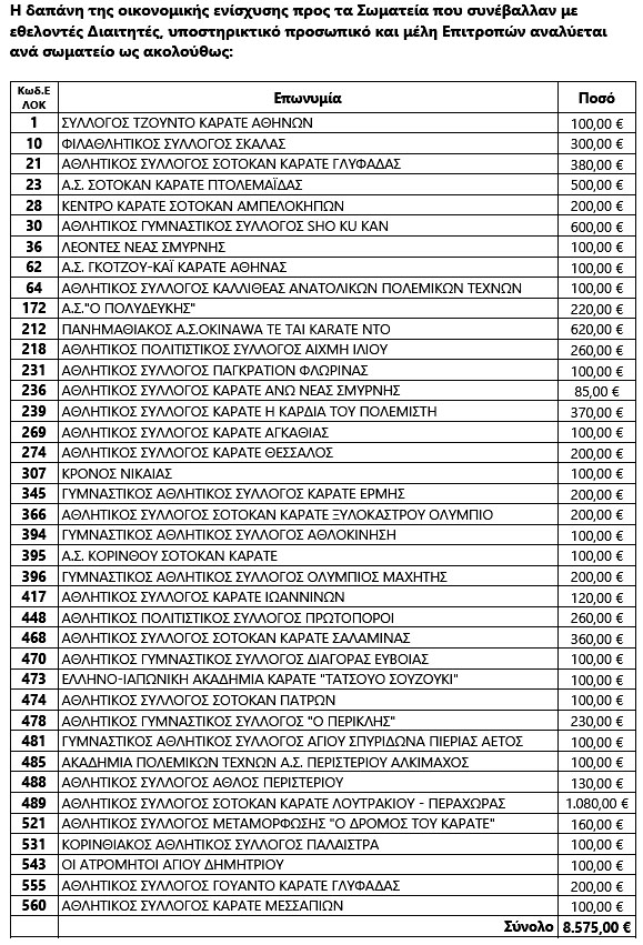 Ο επόμενος Πίνακας των Ενισχύσεων είναι από το Πρακτικό του ΔΣ της 30/11/2022!