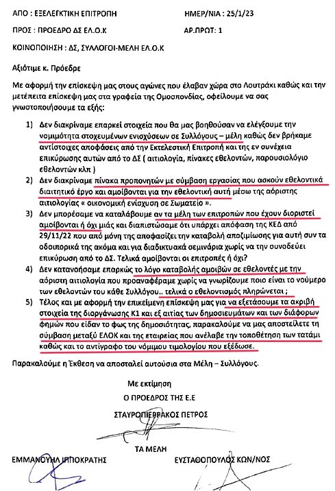 Επιστολή-Διαμαρτυρία της Ελεγκτικής Επιτροπής για εμπόδια στο έργο της από τον Ταμία και μηδενική πρόοδος στους διαχειριστικούς κα οικονομικούς ελέγχους της ΕΛΟΚ!