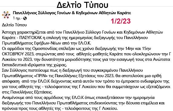 αξιοθρήνητο Δελτίο Τύπου της ΕΛΟΚ την 16 Ιανουαρίου, 2023,