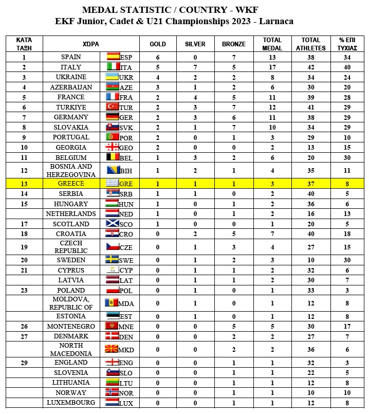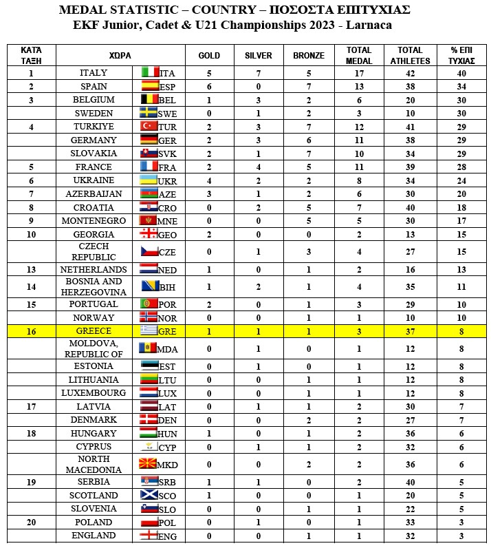 Παπάρια Δεύτεροι στους 72 ήρθατε, όπως ανακοινώνετε! 14οι ήρθατε στους 44 με 81 αθλητές ήρθατε, όπως δείχνει και ο επόμενος Πίνακας Ποσοστών Επιτυχίας, όταν 5 μόνο χώρες ήρθαν με πάνω από 50 αθλητές, περί τις 60 χώρες ήρθαν με κάτω από 30 αθλητές, εκ των οποίων 30 χώρες με κάτω από 5 αθλητές!
