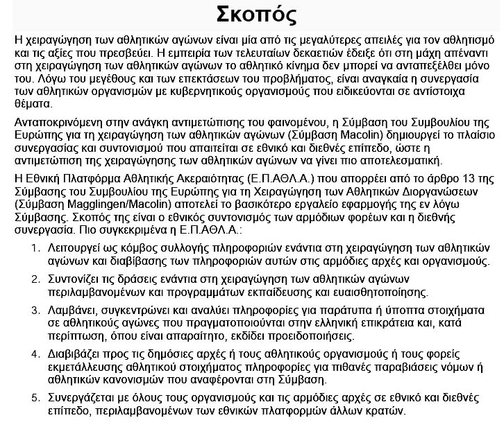 Δηλαδή είναι ένας νέος οργανισμός σε μορφή δημόσιας υπηρεσίας με τον επόμενο Σκοπό χονδρικά και αφορά στη Σύμβαση Macolin (με κλικ εδώ), που υπέγραψε και η χώρα μας με ακόμα έξι Ευρωπαϊκές χώρες για την προστασία της αξιοπιστίας των αθλητικών αγώνων στην προσπάθεια να μειώσουν την χειραγώσηση των στοιχημάτων στους αγώνες: