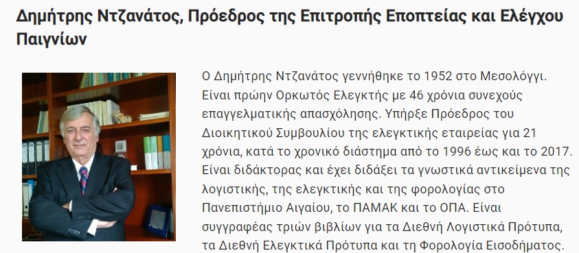 Τον κύριο από τον πλανήτη του εθνικού τζόγου δεν τον γνωρίζω καθόλου, αλλά το πρώην "ορκωτός λογιστής" δεν μου αρέσει, διότι μου θυμίζει τους κολλητούς του Φυλακτού, που τον καλύπτουν κάθε χρόνο στις απάτες της ΕΛΟΚ!!!