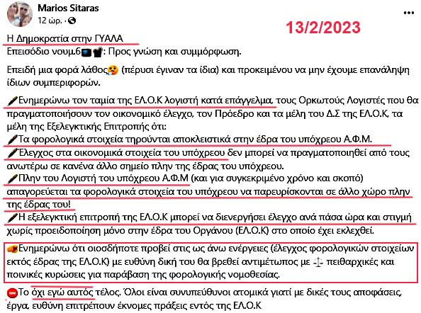 Την ανωτέρω ανάρτηση ο Μάριος Σιταράς την συνδέει με αντίστοιχη καταγγελία στο "Ε.Π.ΑΘΛ.Α."!!!
