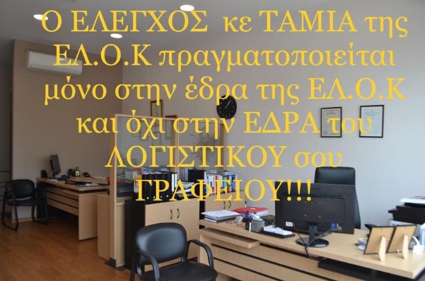 Οι σκληροπυρηνικοί του ΔΣ/ΕΛΟΚ μεθοδεύουν κουκούλωμα των διοικητικών και οικονομικών ατασθαλιών: Οι δήθεν έλεγχοι θα γίνουν ΠΑΡΑΝΟΜΑ στο γραφείο του Ταμία Φυλακτού στο Παγκράτι και όχι στο νόμιμο  χώρο ελέγχου, που είναι τα γραφεία της ΕΛΟΚ! Ορκωτός Λογιστής θα χρησιμοποιηθεί ΠΑΡΑΝΟΜΑ για δήθεν νομιμοποίηση των οικονομικών της ΕΛΟΚ, ενώ για τα διοικητικά θα τηρηθεί το λεγόμενο ... "τουμπεκί ψιλοκομμένο"!!! Τα δύο μέλη της Ελεγκτικής Επιτροπής Πέτρος Σταυροπιερράκος (κολλητός του Ταμία Φυλακτού) και Μάνος Ιπποκράτης (αχυράνθρωπος με άγνοια επί των θεμάτων της ΕΛΟΚ) θα υπογράψουν τυφλά χωρίς να έχουν ελέγξει ουσιαστικά, ενώ το τρίτο μέλος Κώστας Ευσταθόπουλος αρνείται κάθε νταβατζιλίκι Φυλακτού και Ορκωτών!