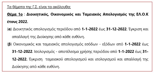 Ε - 12/3/2023 - Η Γενική Απολογιστική Συνέλευση για το 2022 της ΕΛΟΚ!!!