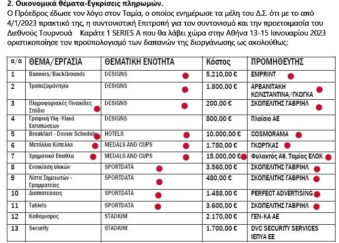 Ο Γαβριήλ Σκοπελίτης (Sportdata) παίρνει 200 € για Πινακίδες (3), 3.560€ για Ενοικίαση Υλικών στο (8), 480 € για Λίστα Σημειωτών στο (9), 3.600 € στο (11) για Tablets, δηλαδή ένα σύνολο 7.840 € μέχρι τώρα και βλέπουμε!