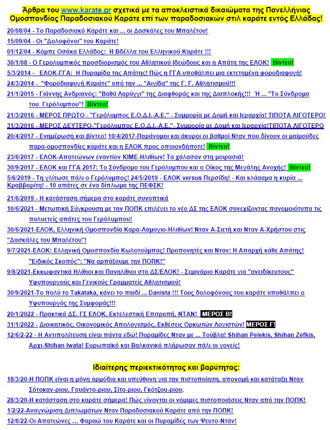 Η Απάτη των Νταν/ΕΛΟΚ. 26η Αναφορά: 31/3/2023. Ενημέρωση κάθε τέσσερις μήνες! / Στηρίξτε το karate.gr με 20 €/έτος! Donations 20€/y! |