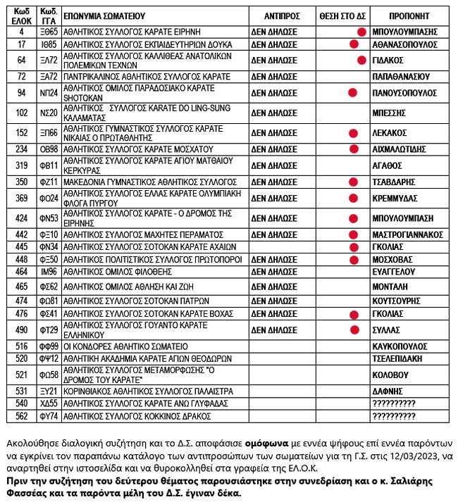 Στον Πίνακα των άνω και κάτω εικόνων βλέπετε τους συλλόγους, που δήλωσαν αντιπροσώπους! Με κόκκινο σημειώνονται όσοι τελικά δεν έλαβαν μέρος στη ΓΣ και με μπλε οι τρεις, που εμφανίστηκαν καθυστερημένα! Με μαύρο σημειώνονται οι σύλλογοι, που ανήκουν τα μέλη του ΔΣ και 3-4 υπερκολλητοί!
