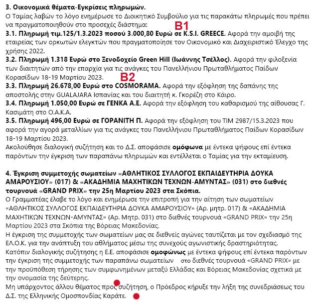 Β) κόβοντας εικονικές αποδείξεις στους συλλόγους για λεφτά, που πληρώνουν οι αθλητές και οι προπονητές για τα Νταν τους,
