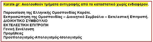 Σημειώνουμε το επόμενο τμήμα, όπου φαίνεται ότι η ΕΛΟΚ έχει έδρα στο Μαρούσι και εννοείται στο ΟΑΚΑ, ενώ εδώ και χρόνια δεν έχει ακόμα μεταφέρει την έδρα της στα Άνω Λιόσια! Αλλά ακόμα και η έδρα στο Μαρούσι και αυτή παράνομη είναι, διότι η ΕΛΟΚ είναι γραμμένη στην Εφορία της Νέας Ιωνίας από την πολύ παλιά διεύθυνσή της στη Νέα Ιωνία πριν πάει στο ΟΑΚΑ!!! Αν σας χαρακτηρίσω, θα πείτε ότι σας βρίζω Ά-Σιετα αν σας αξίζει!!!