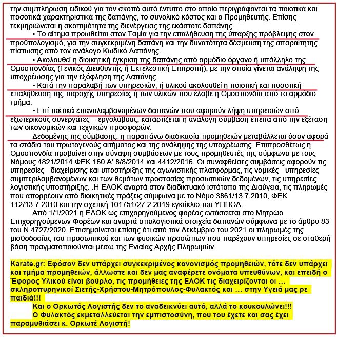 Καλά στις προμήθειες γίνεται ΤΗΣ ... ΕΛΟΚ ΤΟ ... ΜΠΑΧΑΛΟ! Τίποτα δεν αγοράζεται νόμιμα!!! Και μόνο με τις κρυφές αποφάσεις της Εκτελεστικής Επιτροπής το έγκλημα των παράνομων προμηθειών είναι αυταπόδεικτο!!! Αν βάλει κανείς και τον άσχετο από τους νόμους προμηθειών Περικλή Κανέλλη ως Έφορο Υλικού, ο οποίος είναι αδύνατο να ενημερώνεται για τις προμήθειες που κάνουν οι Φυλακτός και Μητρόπουλος η ... μαρέγκα ήρθε και έδεσε!!!