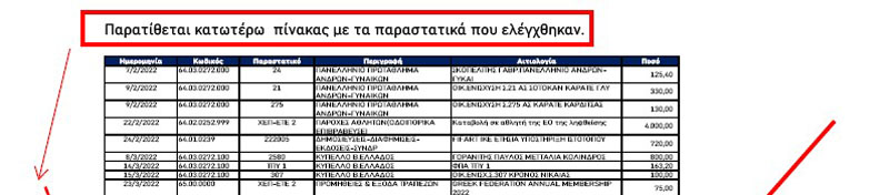 Στη συνέχεια ο Ορκωτός μας δίνει ένα Πϊνακα με τα παραστατικά, που ισχυρίζεται ότι ελέγχθηκαν!