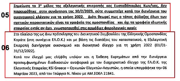 06 - Οι Σταυροπιερράκος και Ιπποκράτης, λοιπόν, διενήργησαν οικονομικό και διοικητικό έλεγχο της ΕΛΟΚ για το 2022!!! Δεν μας λένε πουθενά πόσες μέρες τους πήρε αυτή η δουλειά και δεν μας λένε πουθενά ακριβώς ποιά πράγματα ελέγξανε! Αυτό αφήνει ένα περιθώριο 90% να μην ελέγξανε τίποτα, αλλά να έβαλαν τυφλές υπογραφές!!!