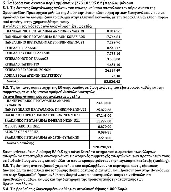 1.8 - Τα έσοδα 11.000 € δήθεν οικονομικών ενισχύσεων των συλλόγων για συμμετοχές των αθλητών τους στις εθνικές ομάδες είναι επίσης μια απάτη της ΕΛΟΚ, διότι στην πραγματικότητα τα λεφτά αυτά τα πληρώνουν οι γονείς των αθλητών και όχι οι σύλλογοι, οι οποίοι αν τα πλήρωναν θα είχαν κλείσει μια ώρα νωρίτερα! Συνεπώς εκδίδονται ψευδείς και εικονικές αποδείξεις!