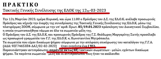 02 - Την Παρασκευή 10/2/2023 πήγε ο Σταυροπιερράκος στα γραφεία της ΕΛΟΚ στα Λιόσια για να ενημερωθεί για τη διαδικασία, τον τρόπο, τον χρόνο και τον τόπο του ελέγχου! Πήγε μόνος του και δεν αναγράφεται αν ενημερώθηκαν και συμφώνησαν και οι άλλοι δύο της Επιτροπής για τα ίδια θέματα, πράγμα που σημαίνει ότι οι σκληροπυρηνικοί της ΕΛΟΚ αδιαφορούσαν ή είχαν ήδη προεξοφλημένη τη συμφωνία ή την ασυμφωνία των άλλων δύο! Κατά 100%, λοιπόν, η χειραγώγηση των Σταυροπιερράκου και Ιπποκράτη είναι βέβαιη, όπως και η διαφοροποίηση του Κώστα Ευσταθόπουλου, όπως αποδεικνύεται και από άλλα σημεία και από τις υπογραφές στο τέλος!