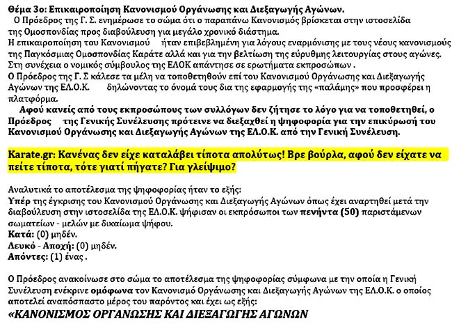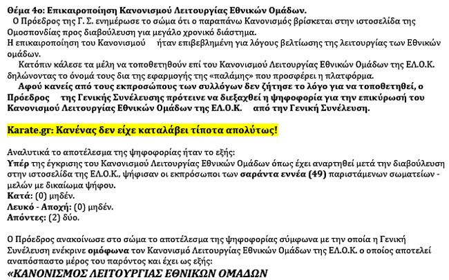 Για τα μέλη του ΔΣ υπάρχει μεταξύ άλλων και ο περιορισμός να μην είναι προπονητές καράτε, ώστε να μην προκύπτει η λεγόμενη "σύγκρουση συμφερόντων"!