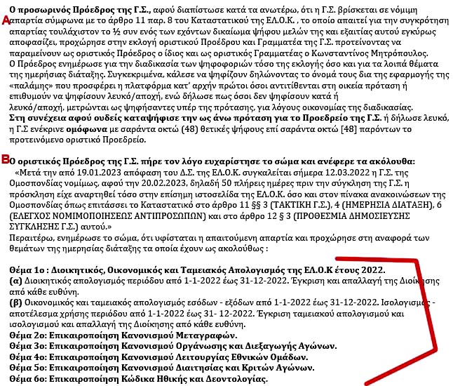 Προέδρου και Γραμματέα της ΕΛΟΚ!