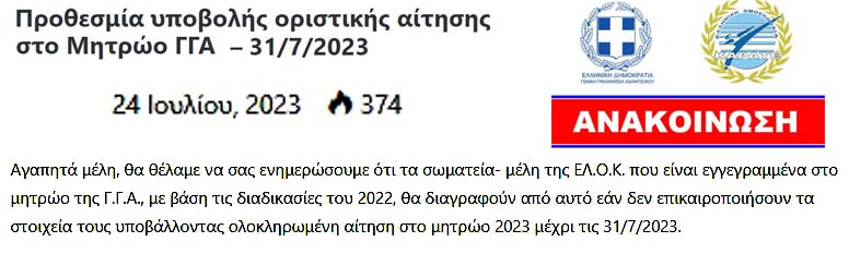 την από 2/11/2022 μέχρι σήμερα ανανεούμενη Ανακοίνωση της ΕΛΟΚ,
