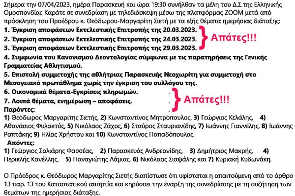 Τα επόμενα δύο Πρακτικά του ΔΣ των 7/4/2023 και 3/5/2023, που αναρτήθηκαν με καθυστέρηση στις 9/8/2023, αμέσως μετά από το άρθρο μας με τίτλο: