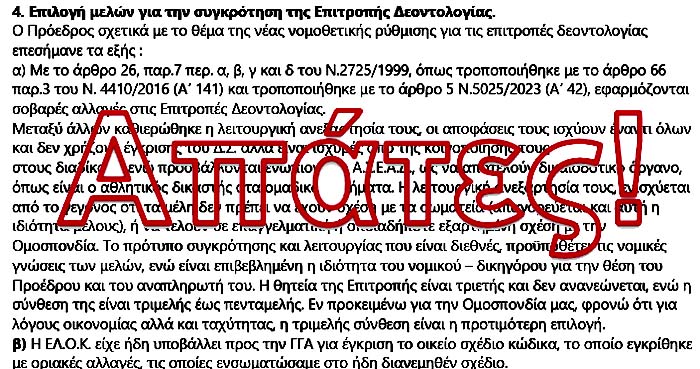 ΓΓΑ της τήρησης αυτών των διατάξεων από τα σωματεία! Κορυφαία βλακεία της ΓΓΑ