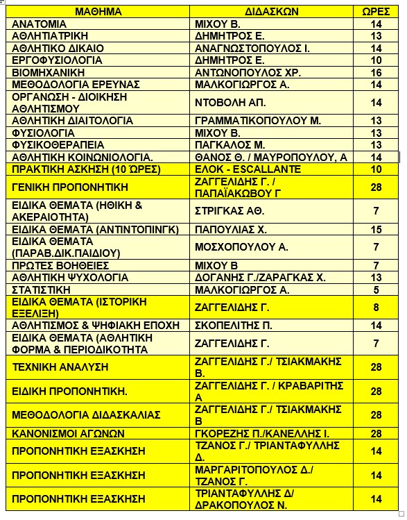 Από το Γενικό Πρόγραμμα Μαθημάτων συγκεντρώνουμε τους Διδάσκοντες και τις ώρες διδασκαλίας των μαθημάτων τους: