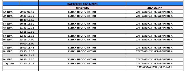 το από 18/8/2023 Γενικό Πρόγραμμα Μαθημάτων