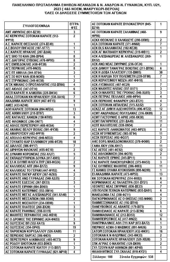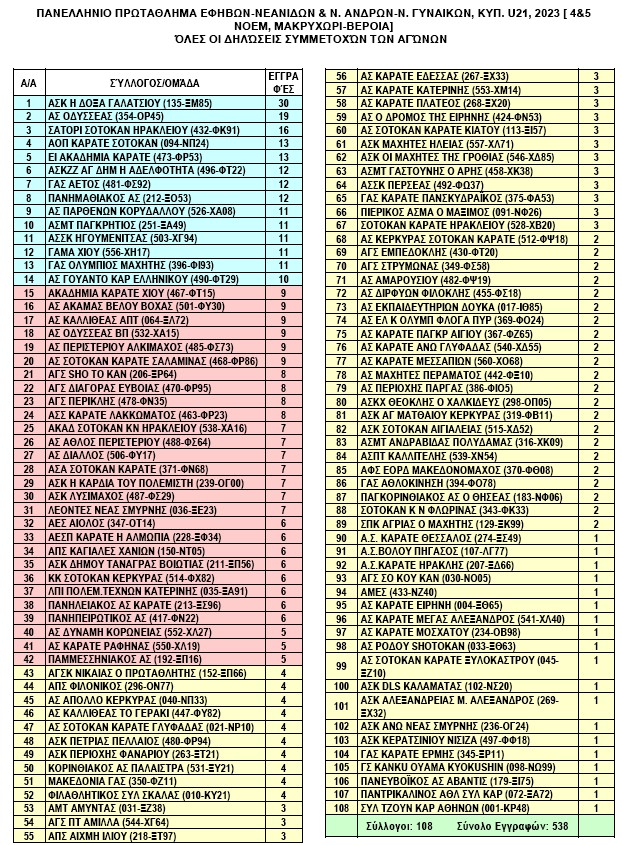 Α - 4,5/11/2023 - Πανελλήνιο Πρωτάθλημα Καράτε Εφήβων-Νεανίδων, Νέων Ανδρών-Γυναικών & Κύπελλο U21 (Βέροια)! (Ενότητες)
