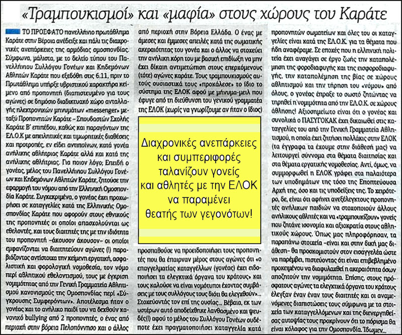 Τώρα αν η ΕΛΟΚ θέλει να προσθέσει ακόμη μια μήνυση στο παλμαρέ της εναντίον μου επειδή λέω την αλήθεια, ΕΥΠΡΟΣΔΕΚΤΗ….