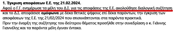 Α - 28/2/2024 - Το παράνομο Πρακτικό του ΔΣ/ΕΛΟΚ με ανάρτηση στη ΔΙΑΥΓΕΙΑ την 27/3/2024 και δεύτερη ανάρτηση την 5/4/2024!  (Ενότητες)