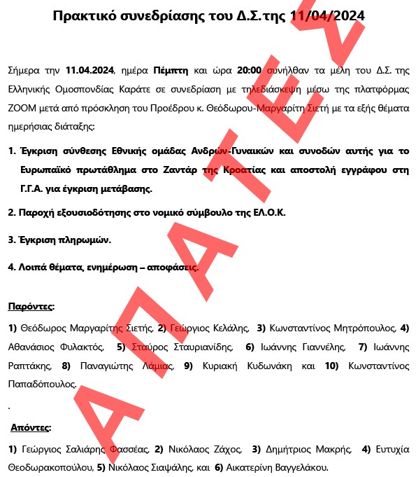 Γ - 11/4/2024 - Το παράνομο Πρακτικό του ΔΣ/ΕΛΟΚ με ανάρτηση στη ΔΙΑΥΓΕΙΑ την 12/4/2024!
