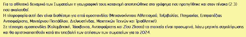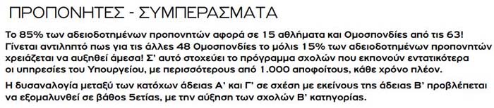Σχόλια: Τα ίδια μας λέγανε και για το Μητρώο Αθλητικών Σωματείων, ότι θα είναι προσβάσιμες οι πληροφορίες για τα σωματεία στον απλό πολίτη, αλλά αυτό ποτέ δεν έγινε για μην δούμε τις ατέλειες και την τεμπελιά τους! Για παράδειγμα, να μην δούμε ότι οι προπονητές νοίκιαζαν τα πτυχία τους σε διάφορους συλλόγους, ότι σύλλογοι στεγάζονταν σε υπόγεια και άλλα πολλά! Μπορεί π.χ. προπονητής καράτε να είναι ταυτόχρονα προπονητής συλλόγου στο Γαλάτσι, στο Καπανδρίτι και στη ... Μυτιλήνη? Μπορεί σύλλογος καράτε να στεγάζεται σε 100 τ.μ. υπόγειο χωρίς δεύτερη έξοδο?