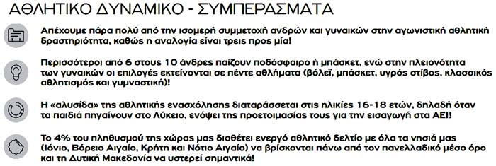 «Μέσα από ένα πλέγμα χρηστικών ψηφιακών εργαλείων, ο πολίτης θα έχει πρόσβαση στο σύνολο των στοιχείων του Αθλητισμού (ομοσπονδίες, σωματεία, αθλητές, προπονητές), ενώ θα μειωθεί η γραφειοκρατία, με την απλοποίηση των διαδικασιών πιστοποίησης και αδειοδότησης αθλητικών φορέων και εγκαταστάσεων.