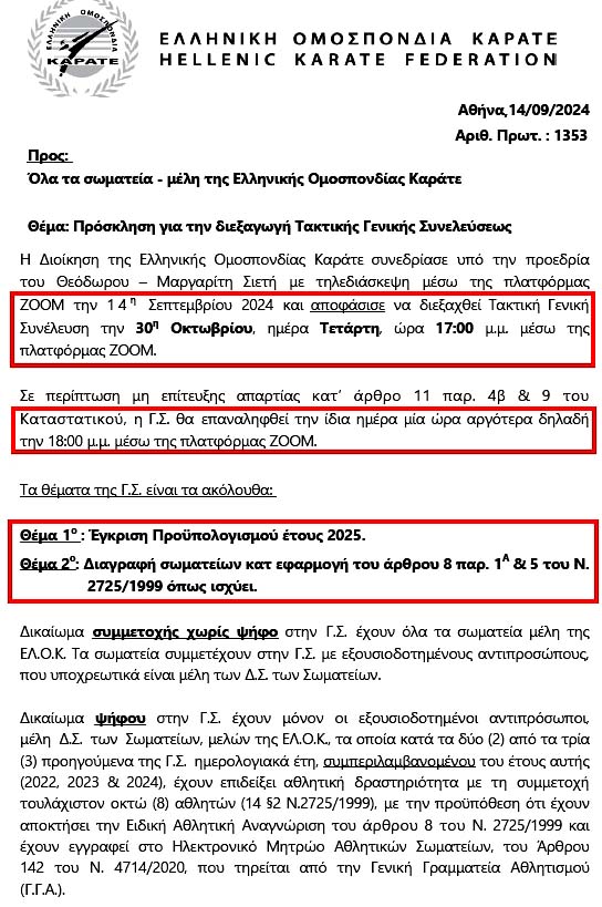 Ανακοίνωση του νέου συνδυασμού "Καράτε Μπροστά" για την διεκδίκηση της ηγεσίας στην Ομοσπονδία Καράτε