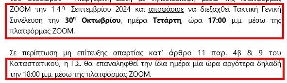 Δ - 30/10/2024 - Καραμπινάτα παράνομη η Πρόσκληση για την διεξαγωγή Τακτικής Γενικής Συνελεύσεως, αλλά αποδεικνύει περίτρανα ότι έχει αρπάξει φωτιά ο ... Κώλος τους!!! (Ενότητες)