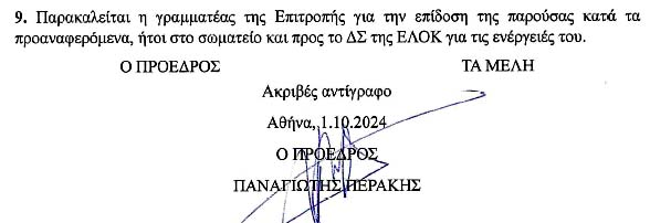 Το Πρακτικό ΔΣ/ΕΛΟΚ της 14/9/2024 (με κλικ εδώ) με ανάρτηση στη ΔΙΑΥΓΕΙΑ την 24/9/2024, δηλαδή μετά από δέκα (10) ημέρες!