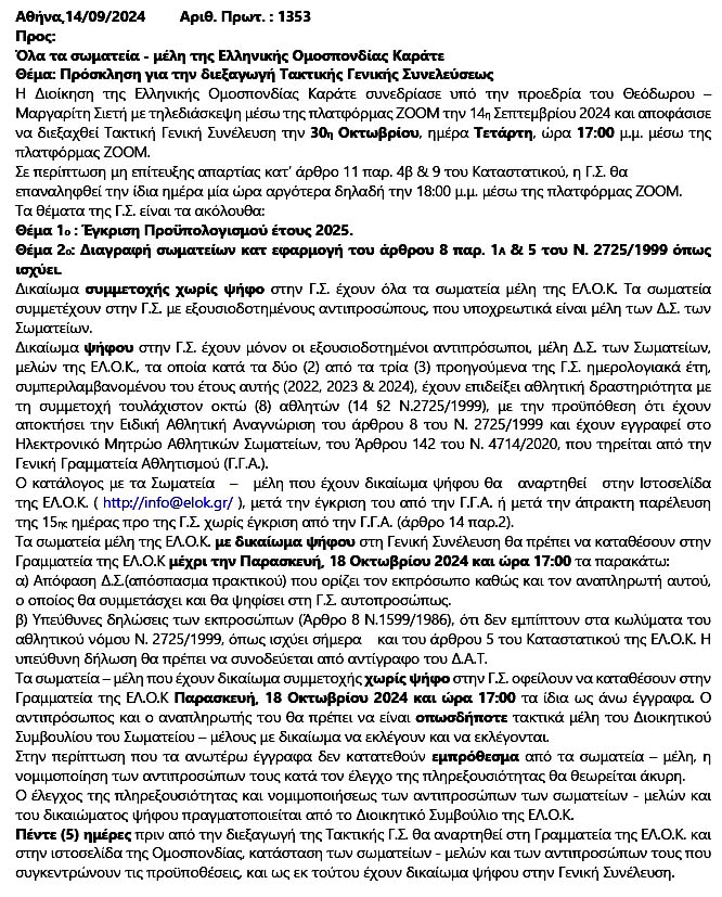 Με αίσθημα ευθύνης απέναντι στα μέλη της κοινότητας του ελληνικού καράτε, εκφράζουμε την έντονη δυσαρέσκειά μας για την απόφαση της Διοίκησης της Ομοσπονδίας να εμμένει στην διεξαγωγή των συνεδριάσεων της Γενικής Συνέλευσης μέσω τηλεδιάσκεψης!