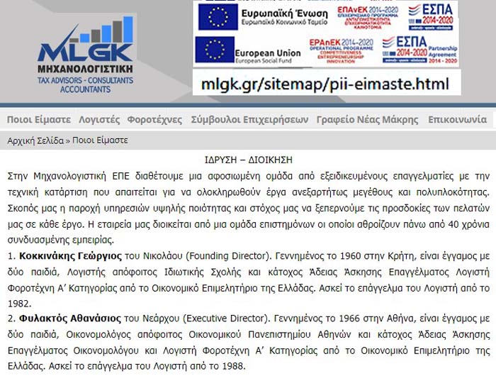 ...για το οποίο "Λογιστήριο της ΕΛΟΚ" το site της φοροτεχνικής εταιρίας "MLGK ΜΗΧΑΝΟΛΟΓΙΣΤΙΚΗ" των Γιώργου Κοκκινάκη και Θανάση Φυλακτού στο "Ποιοί είμαστε" https://mlgk.gr/sitemap/pii-eimaste.html μας δίνει: